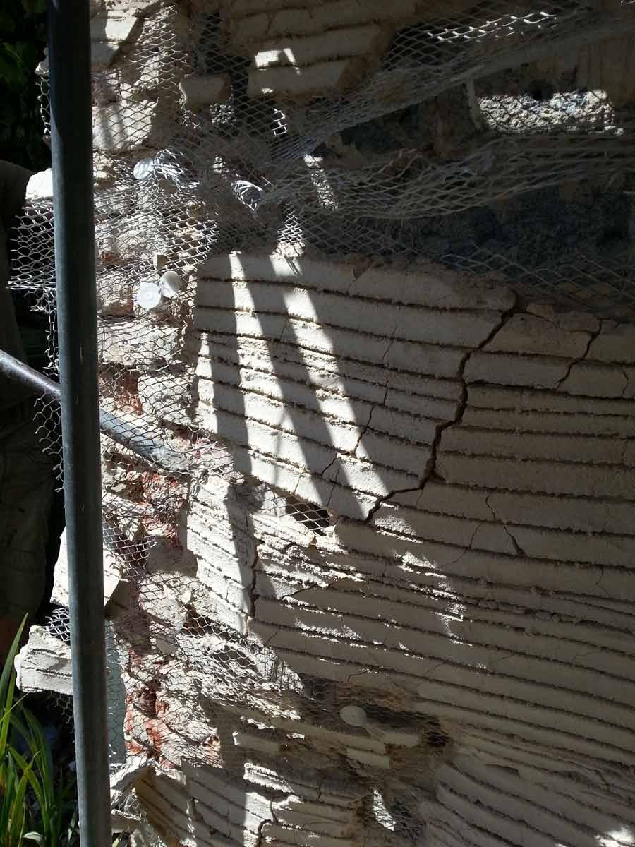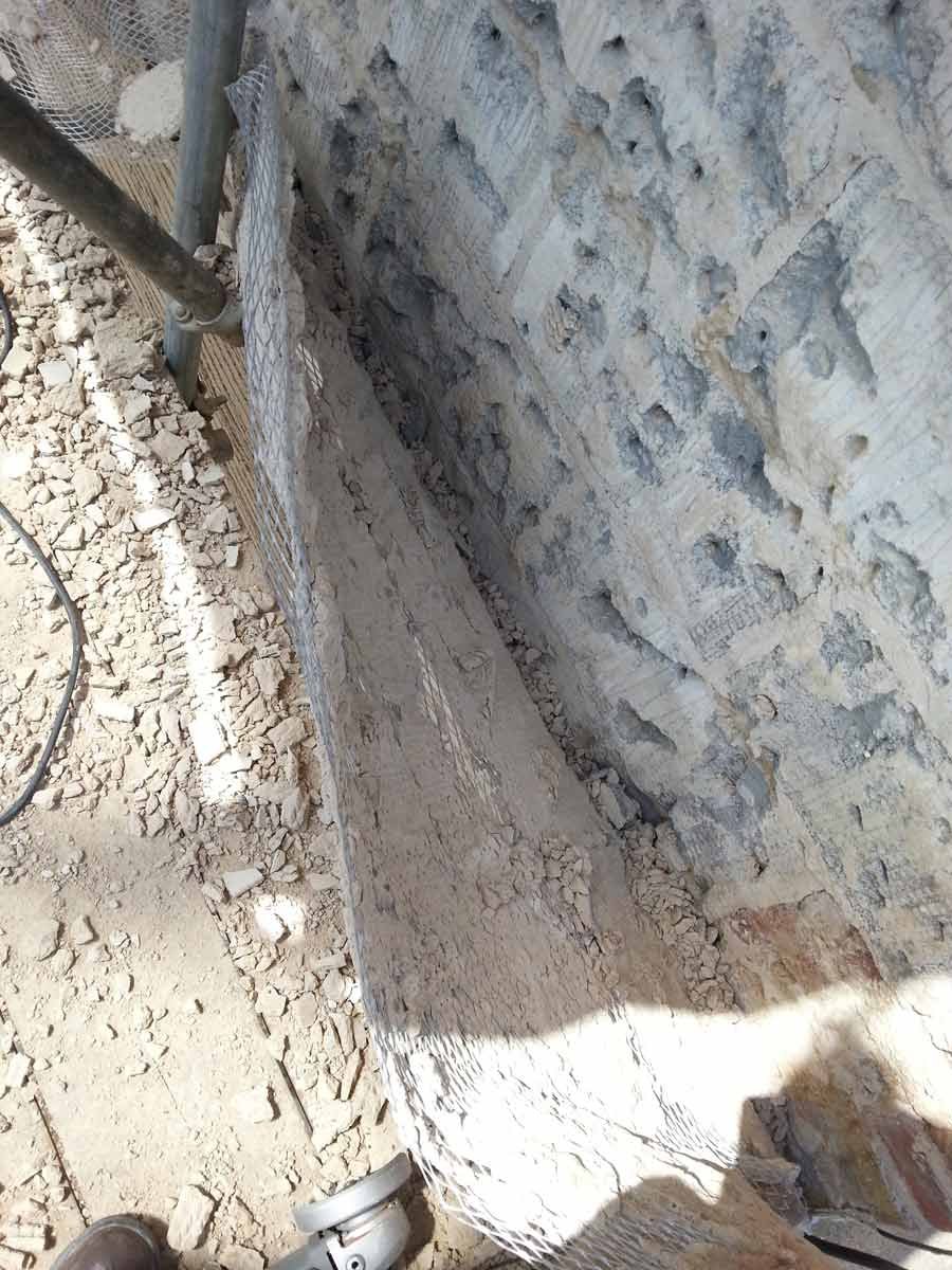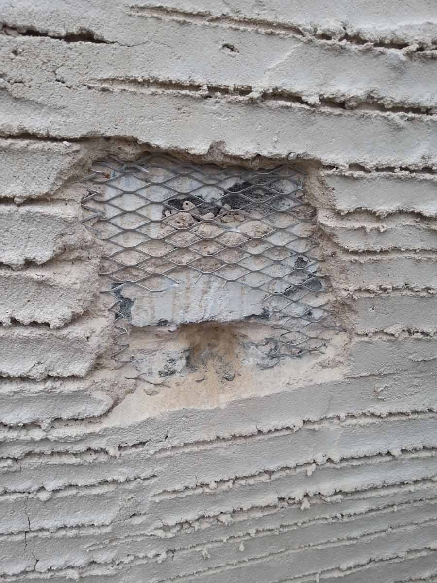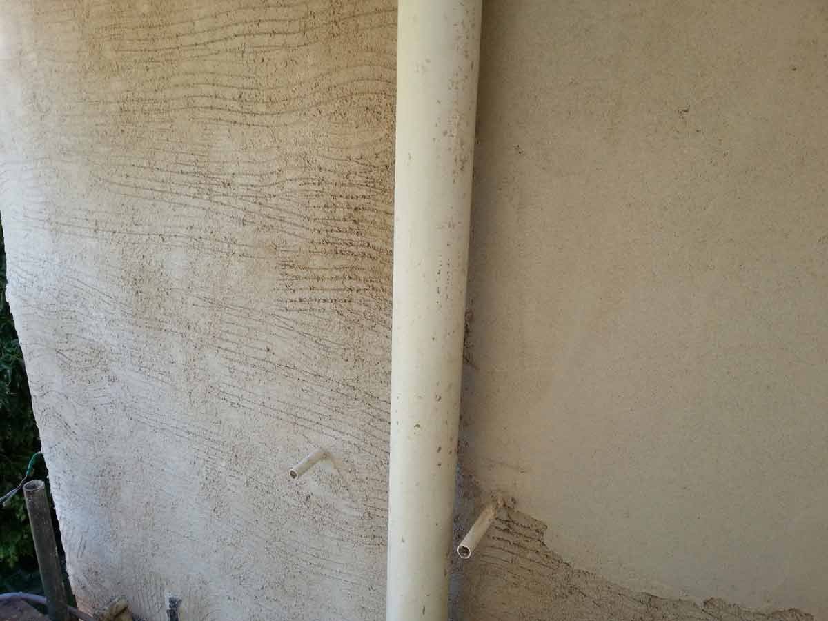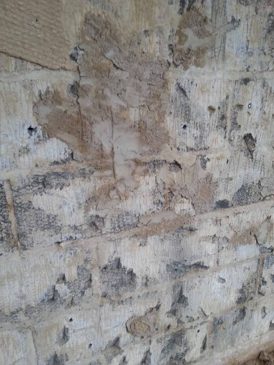 A coarse mix of haired (horse and goat) Lime Putty Render was then applied in two coats followed by an un-haired, floated, Top Coat, carefully hydrated and protected until the Putty had completed its shrinkage.