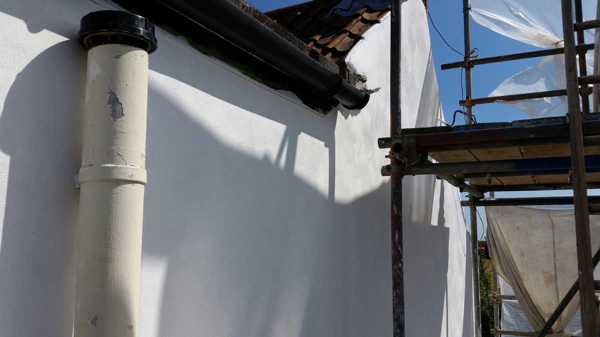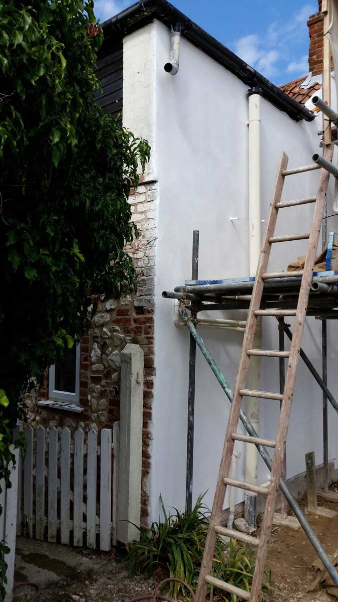 The Render will continue to carbonate and harden for many months (at a rate of 1mm per month), giving a highly breathable, flexible and sympathetic protection to this exposed elevation of the cottage.